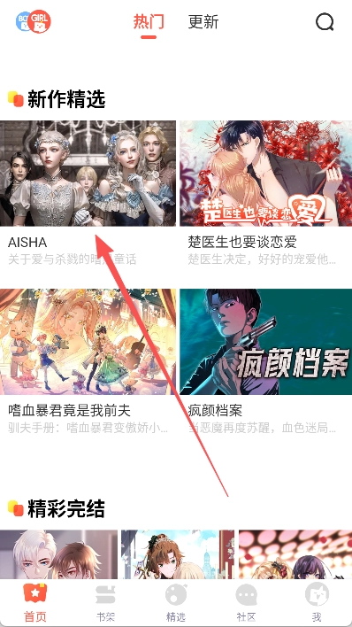 3、进入主页后,根据自己的爱好选择漫画作品。