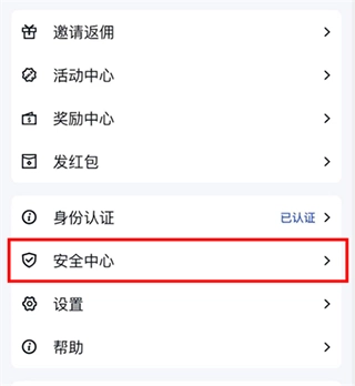 1、首先打开指定App的个人中心,点击下方的“安全中心”。