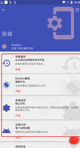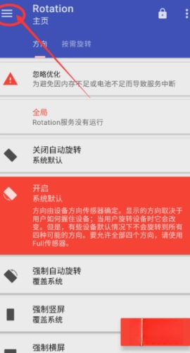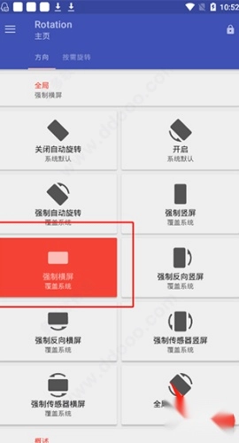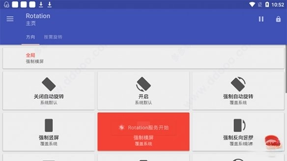 rotation强制横屏是一款手机屏幕方向管理工具,借助它用户能够把手机竖屏强制切换为横屏模式,除了支持强制自动旋转、强制竖屏、强制横屏、强制反向竖屏等功能设置外,还可以针对单个应用单独使用,无需获取root权限就能直接进行配置,并且该软件还提供了多种个性化的主题设置选项。