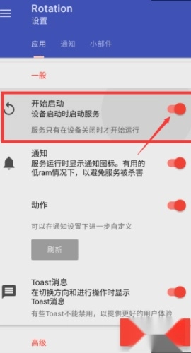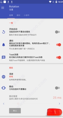 提供启动时自动启动、通知设置、通知切换、通知优先级调整、Toast消息提示、振动反馈等功能。