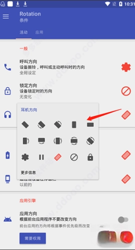 另外,这款软件还支持在通话、锁屏、播放音乐等多种使用场景中,对屏幕方向进行自定义设置。