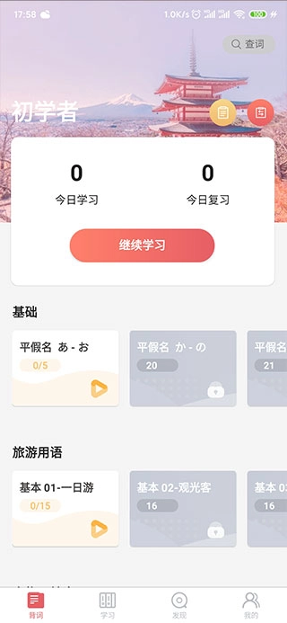 进入学习界面后,你就能依照软件的引导,正式开启日语单词的学习之旅。