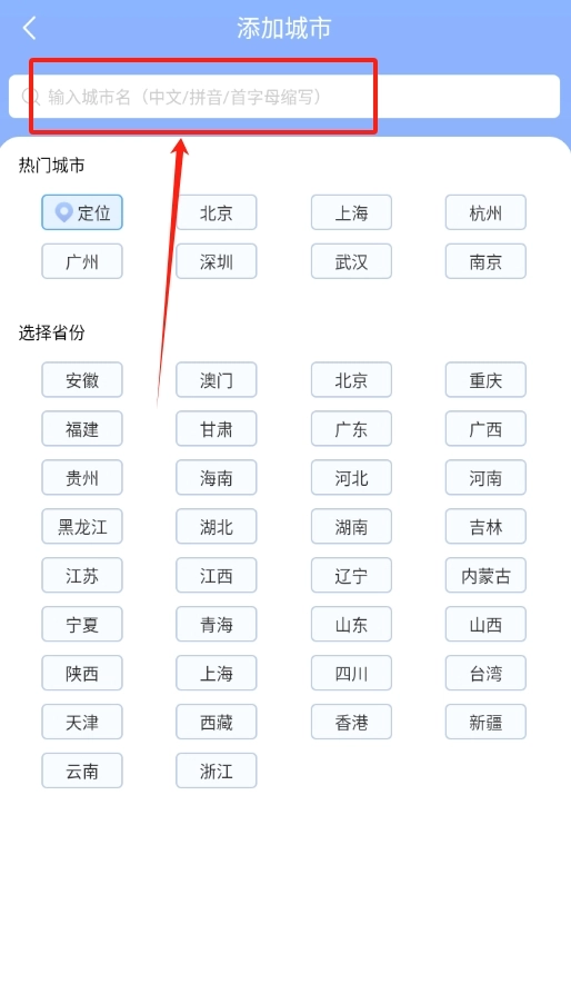 城市添加功能既支持自动定位当前所在位置,也允许手动输入来添加多个城市,以此满足不同用户查看多地天气的需求。