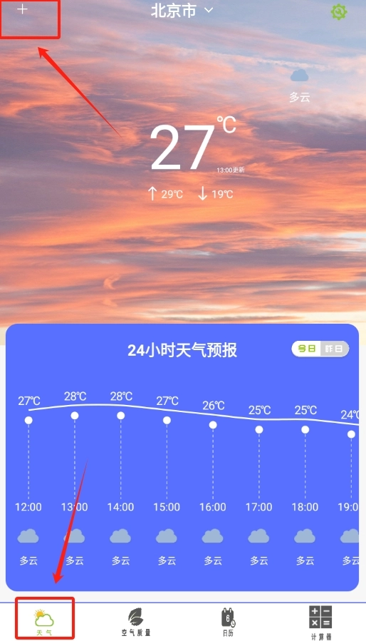 安装晴云天气并打开软件后,系统会自动完成定位,随即呈现当地的实时天气情况以及相关信息。