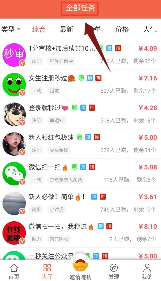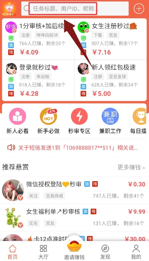 在首页,你可以利用任务标题、IP地址或者用户昵称这类关键词来开展搜索操作。