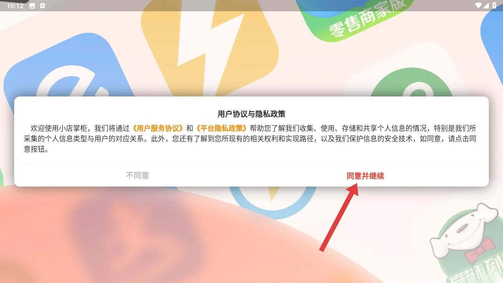 首次使用该软件时,需先同意相关协议政策,再通过手机号完成登录操作:输入手机号码、勾选协议,点击“下一步”即可走完登录流程,随后会进入展示营业数据等内容的界面。