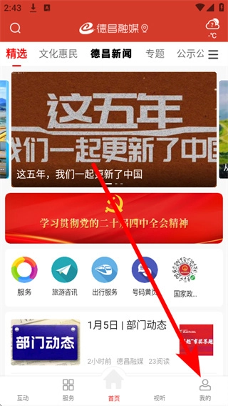 打开德昌融媒应用,点击底部导航栏中的“我的”选项,即可进入个人中心页面。