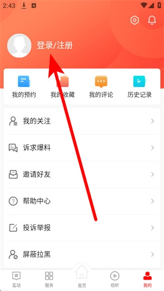 在个人中心页面找到登录注册区域并点击,即可进入账号登录页面。