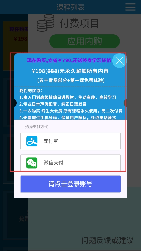 在付费项目页面,挑选支付方式,购买能永久解锁所有内容的会员。
