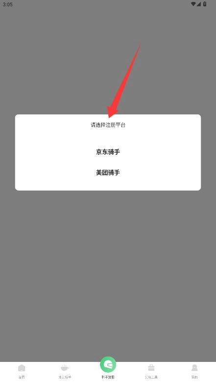 进入应用内的骑手注册选择界面后,可依据自身需求挑选京东骑手或美团骑手的类型来完成注册流程。