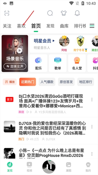 在首页点击顶部【喜欢】标签,进入对应页面。