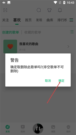 确认目标歌单为空后,在弹窗里点击【确定】按钮,就能完成这个歌单的删除操作。