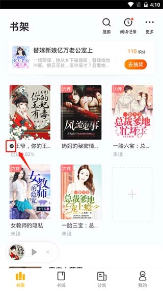 好的小说可在书架中查看,带有这个黑色标识就表示缓存成功,能够离线阅读。