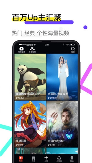 2.视频专区提供动漫、游戏视频、自动风景、萌宠动物、影视明星等资源。