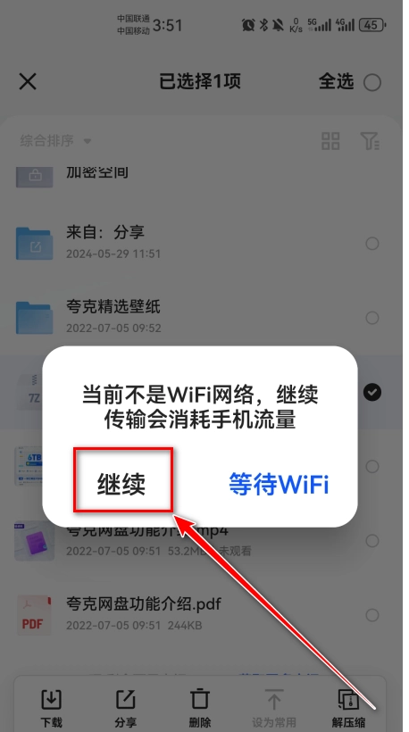 长按需要的文件。