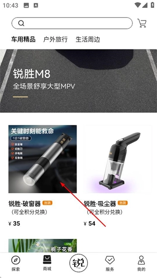 进入锐胜汽车后,点击底部的商城选项,就能进入商品页面。