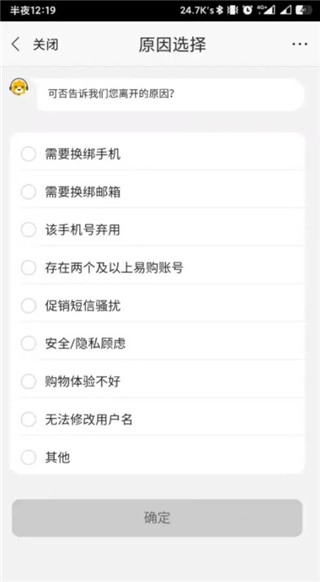 用户可从苏宁易购软件提供的多种注销原因中挑选一个,点击下方的【确定】按钮后,按照手机提示操作就行,大家能依据自身需求来选择设置。