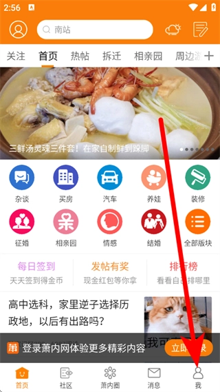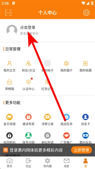 在萧内网首页,点击底部的“我”,即可进入个人中心页面。