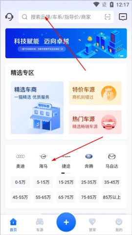 打开车商猫,在首页就能轻松搜索不同品牌和商家的车源,让你心仪的车型都能一手掌握。