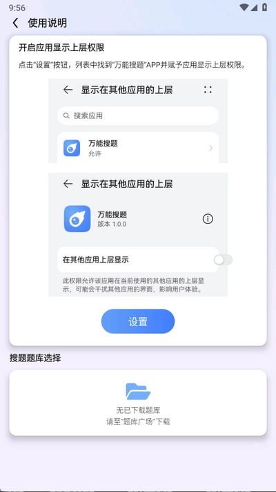 万能搜题答题是掌握先进科技(南京)有限公司精心打造的一款面向各行业用户的题库类应用,覆盖公职、消防、煤矿、国网、医护、交管等众多领域,为用户提供便捷的搜题与答题服务。该软件拥有拍照搜题、极速搜题、读屏搜题、手动搜题等多项实用功能,助力用户快速获取答案,提高学习效率。用户通过简单操作即可获取所需题目及解析,以便更有效地开展学习和备考,满足各类用户的不同需求。