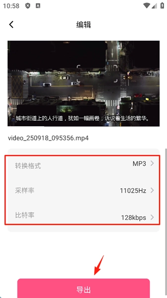 选择好转换格式、采样率与比特率这些参数,接着点击屏幕下方的“导出”按钮就可以了。