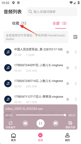 这就可以看到已经提取出来的音乐了。