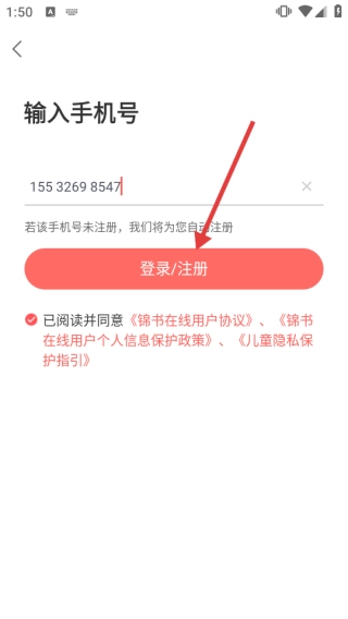 请输入您的手机号,勾选同意相关协议后,点击页面上的【登录/注册】按钮即可。
