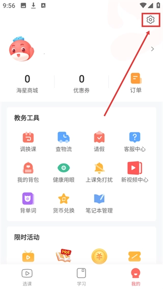 在课程界面底部,点击【我的】按钮进入个人中心。
