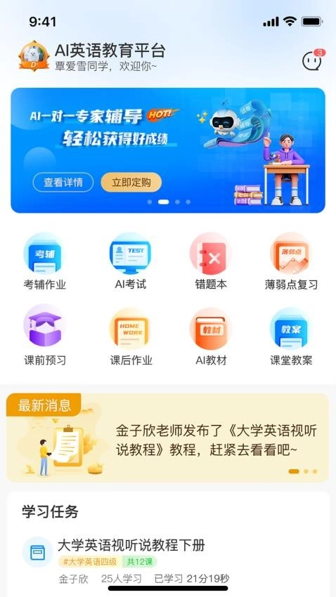 AI英语教育平台手机版是一款具备特色英语教学服务的平台,这里拥有海量英语考试训练资源,所有题库均配备详细的答案解析以及名师视频课程讲解,助力用户迅速攻克薄弱知识点,增强自身英语知识储备;对这款软件感兴趣的用户,可以来本站一键获取。