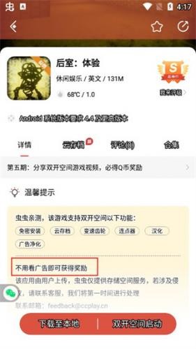 1、安装虫虫助手,运行软件,可以看到有首页、游戏库、排行、广场、双开空间五个板块;