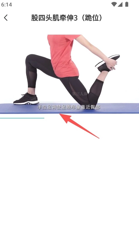 2、点击具体动作,如股四头肌牵伸,查看动作说明。
