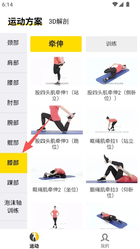 3. 功能模块划分清晰,主要分为运动规划和三维解剖两大模块。在动作方案中,进一步细分拉伸和训练,使结构清晰,易于操作。