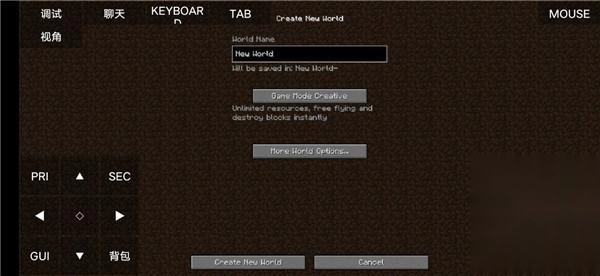 7、进入此界面后选择你的游戏模式以及名称并点击下方的“Create New World”;
