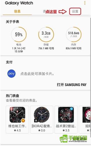 1.打开Galaxy Watch后点击右上角的设置按钮