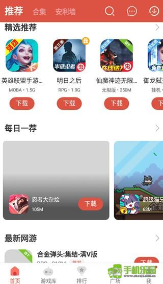 1、在本站安装虫虫助手安卓版并运行软件后,会看到首页、游戏库、排行、发现、我的这五个板块;