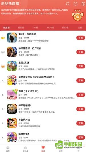 4、点击进入排行页面,这里设有新品榜、畅销榜、BT榜、MOD榜、预约榜等各类游戏排行榜,为玩家提供多样化的选择;
