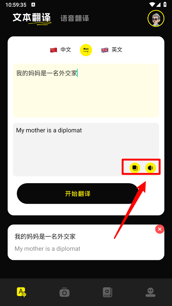 3、翻译完成后,用户可一键复制结果或使用朗读功能学习正确发音。