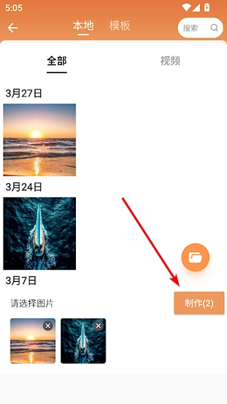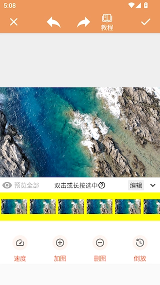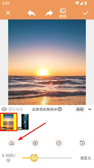 在导入图片的场景下,可通过点击列表中的图片完成选中操作,随后点击速度按钮来调整图片的显示时长。