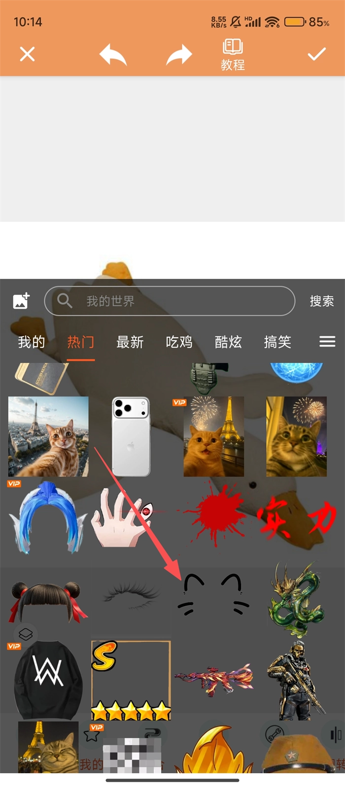 导入素材之后,我们可以在贴纸库挑选自己喜爱的贴纸,像萌萌的猫耳贴纸就很合适,把它添加到图片上,能让图片变得更有意思呢。