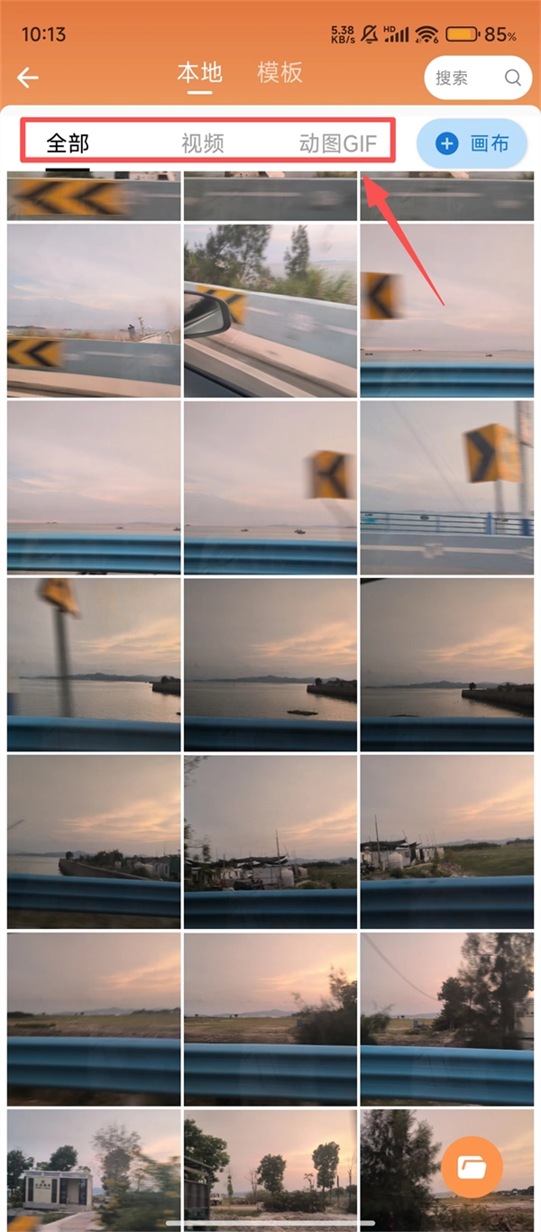 进入导入界面后,我们可以在【全部】、【视频】、【动图GIF】这几个选项里挑选素材类型,找到合适的内容来进行编辑。