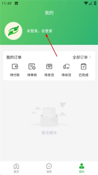 在个人中心页面,点击“未登录,去登录”按钮,即可进入登录界面。