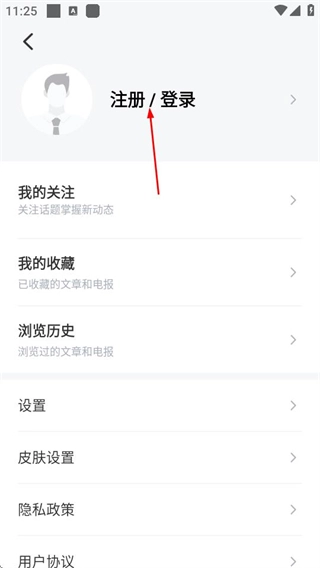 在个人页面,点击注册登录选项,进入登录页面。