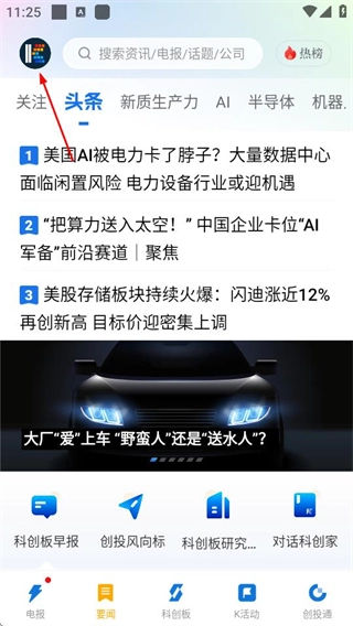 在科创板日报首页,点击左上角的图标,就能进入个人页面。