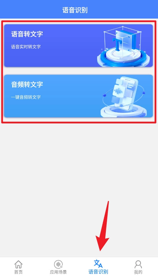 语音识别页面具备语音实时转文字与音频转文字的功能,能够助力用户迅速将语音内容转化为文字形式,进而提升信息记录和处理的效率。