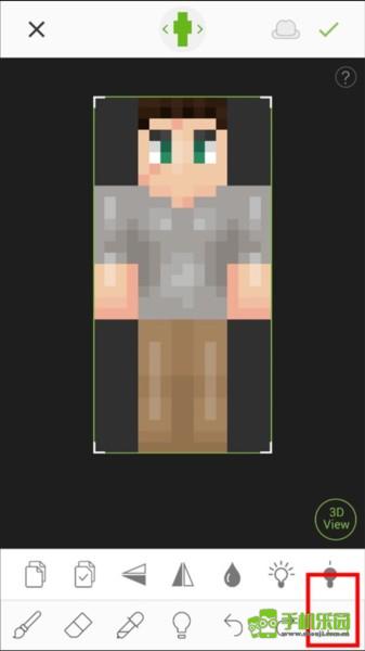 6、下面的功能都比较简单,画笔、橡皮擦等等,最后一个小功能提一下,可以复制粘贴我们所做的皮肤,以及垂直翻转和镜像翻转等,都比较的简单和平时编辑图片差不多;