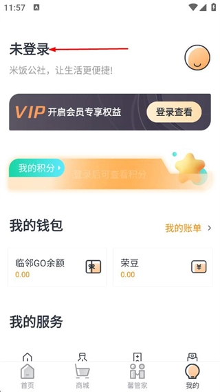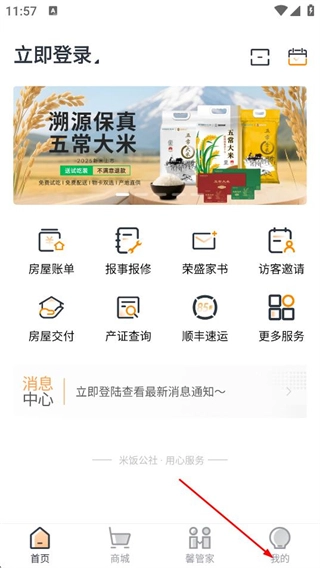 在米饭公社的首页,点击底部的“我的”选项,就能进入个人中心页面。