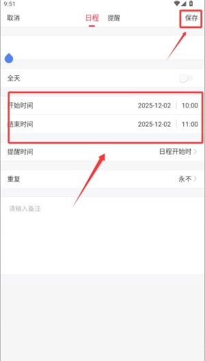 你可以先选择开始时间和结束时间,完成选择后点击右上角的保存按钮就可以了。