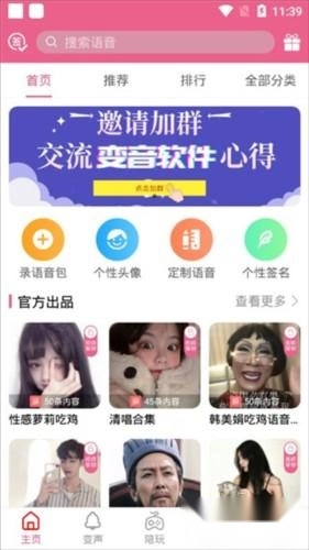 1、安装本站提供的萌我变声器免费版软件,进入软件后,在主界面能看到各种各样的语音包。