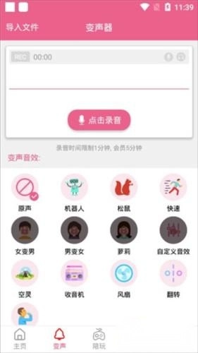 2、提供爷爷、大叔、萝莉、小孩、幽灵、机器人等多种变声器效果供选择,使用时只需轻点即可切换,助你变身自带BGM的潮流达人。