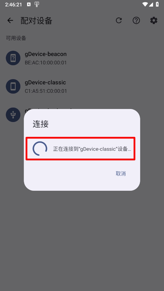 4、进入配对设备页面,会自动识别附近的设备,点击所需连接的设备。